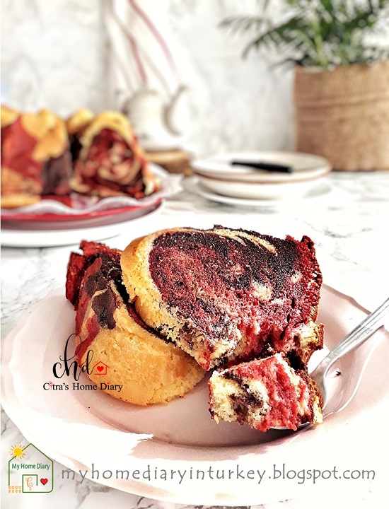 The marble is optional. you can use only chocolate marble or only red velvet marble or you can try both like what I am sharing today. For red velvet marble, use natural cocoa powder-not Dutch-processed one- which has a light and pale brown color.